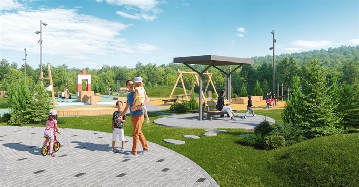 Закрытый от посторонних двор разделен на зоны так, чтобы никто никому не мешал. Максимально эффективно используется площадь участка, а также, создается высокий уровень активности. Дорожки во дворе четко обозначают сценарии отдыха: детская площадка, спортивная зона и места для релакса.