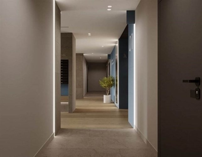 Холлы в комплексе — это интересный и продуманный дизайн, много света и функционального пространства.