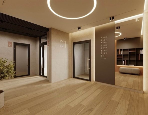 В холле на первом этаже предусмотрена просторная зона ожидания. Бесшумный скоростной лифт комфортно доставит вас на любой этаж, а понятная навигация сопроводит гостей до нужной квартиры.
