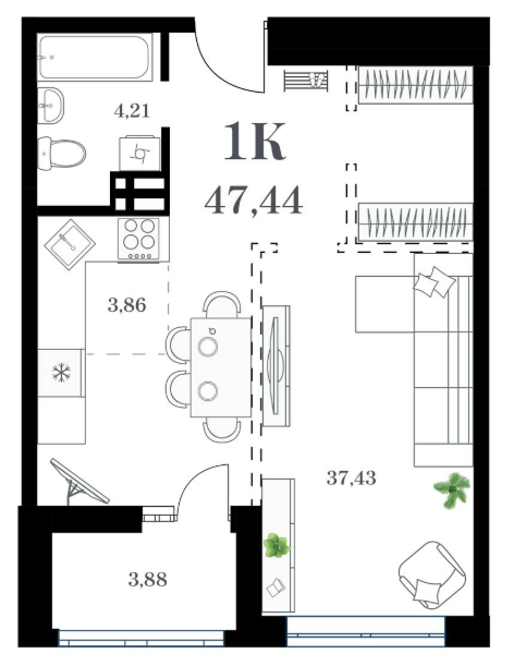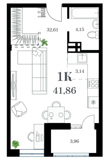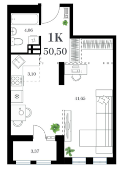 Площадь от 41.73 м2