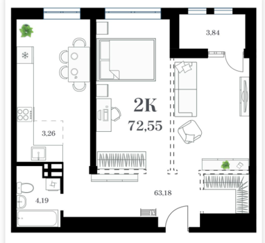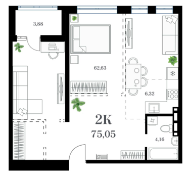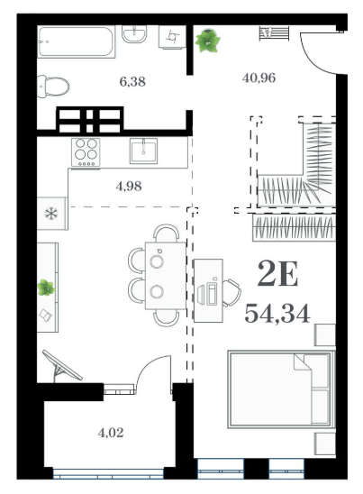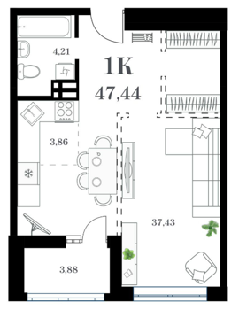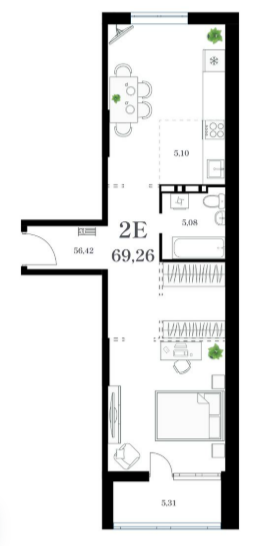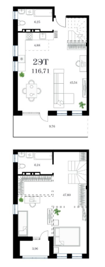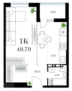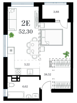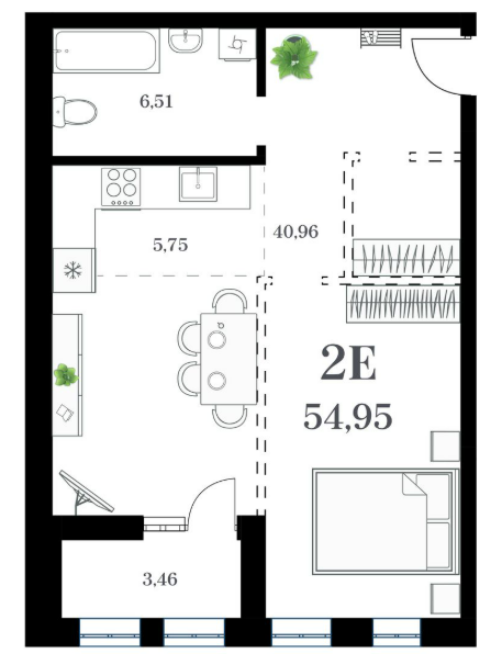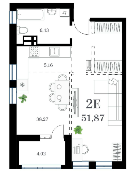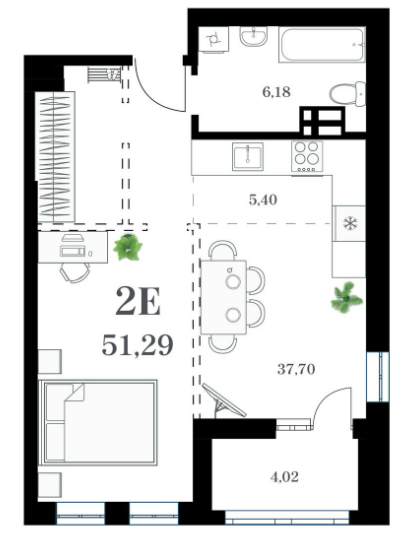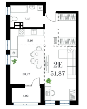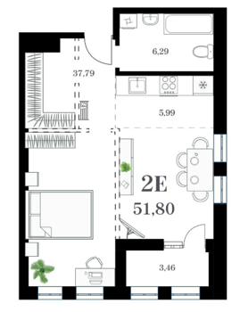 Площадь от 51.29 м2