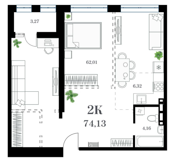 В жилом комплексе запроектированы функциональные студии, классические варианты одно-, двух-комнатных квартир, и даже просторные двухэтажные планировочные решения, а также квартиры евроформата для любителей свободного пространства.