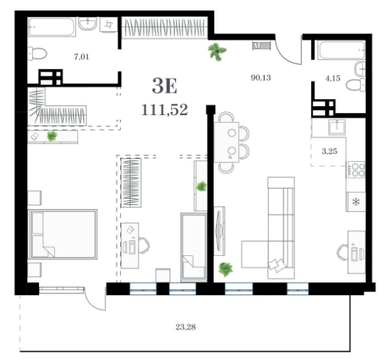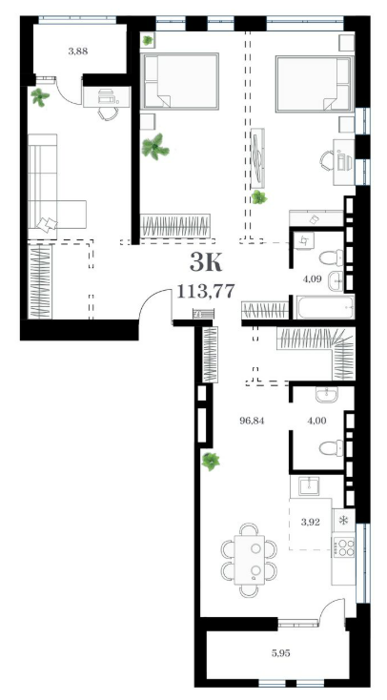 Площадь от 113.59 м2