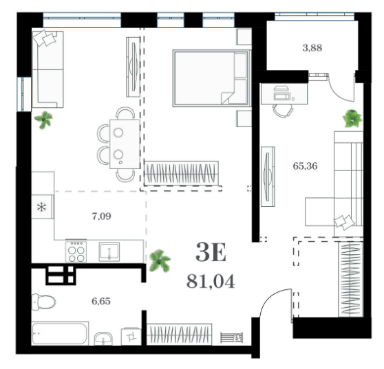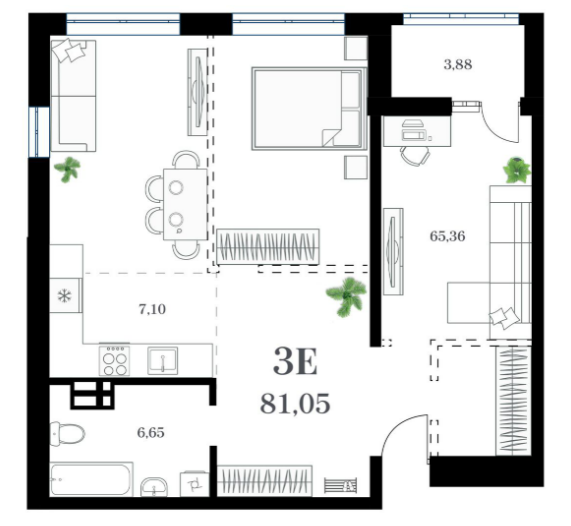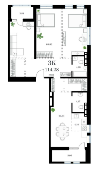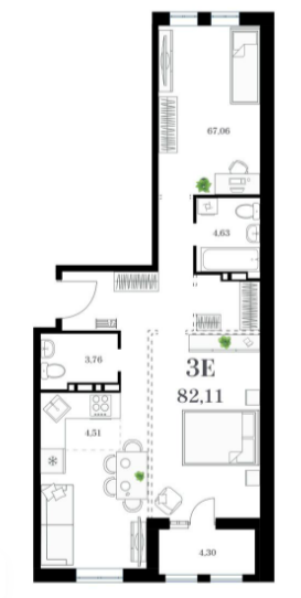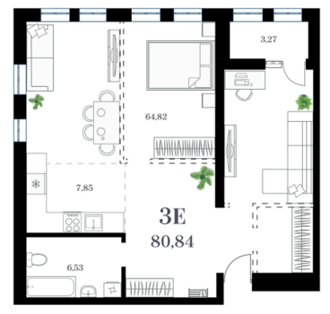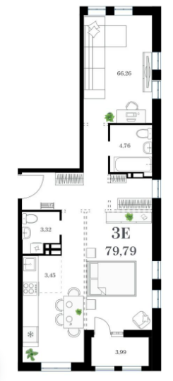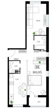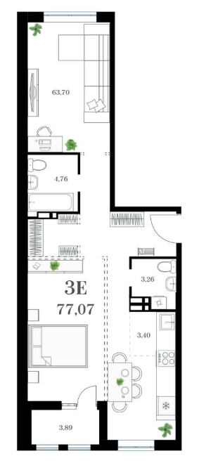 Площадь от 77.07 м2