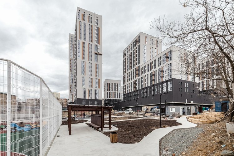 Комфортному пребыванию во дворе уделено много внимания, как и проживанию в квартире. Детские и спортивные площадки для разных возрастов, зоны отдыха располагаются как на стилобатной части между корпусами, так и на парковой территории рядом с комплексом. Проектом предусмотрено комплексное благоустройство и озеленение территории комплекса.