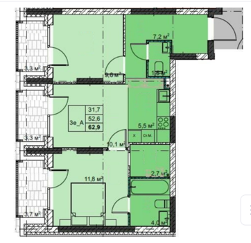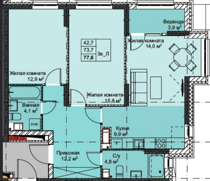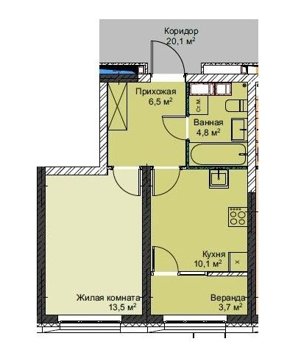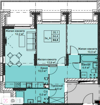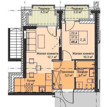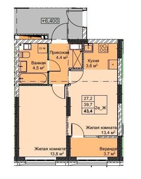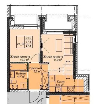 Площадь от 37.4 м2