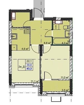 Площадь от 33.6 м2