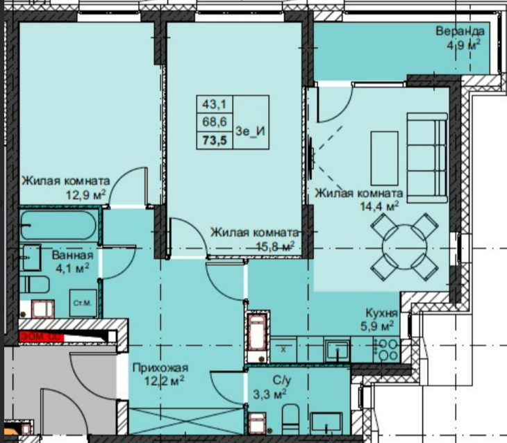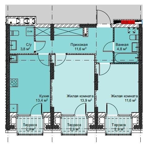 Площадь от 67.8 м2