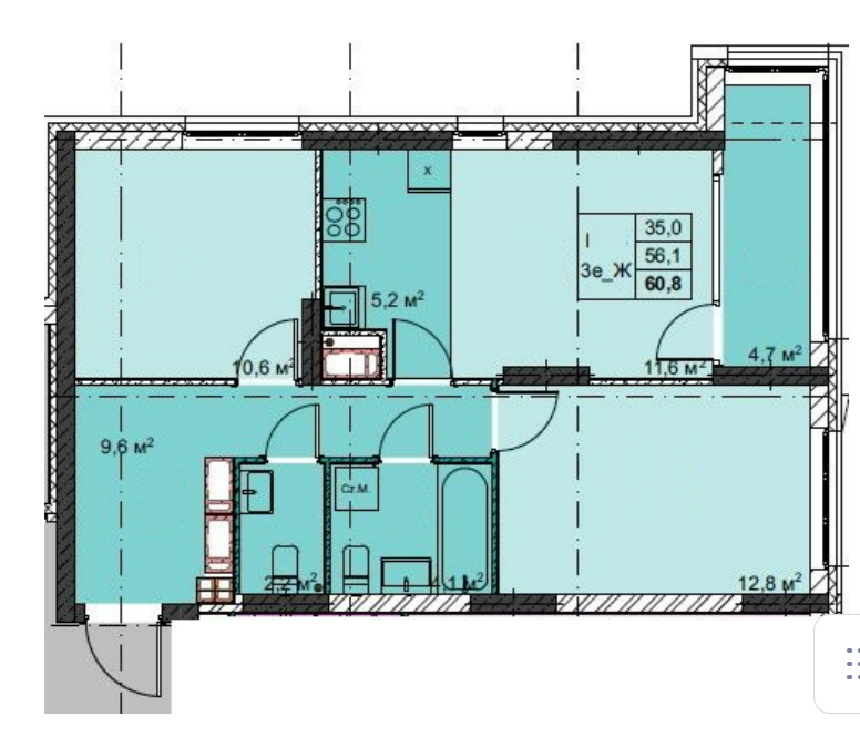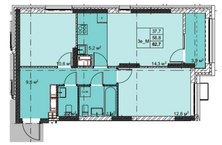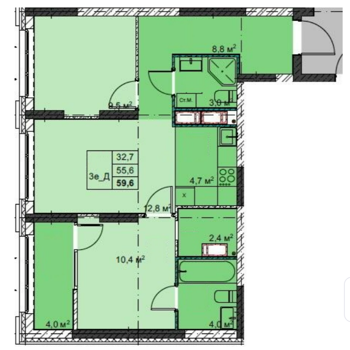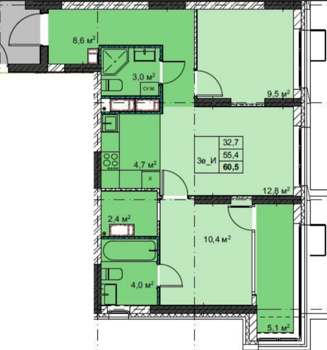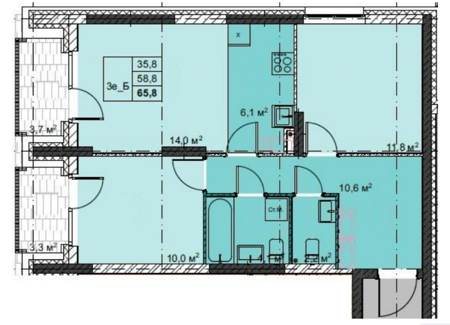 Площадь от 59.6 м2