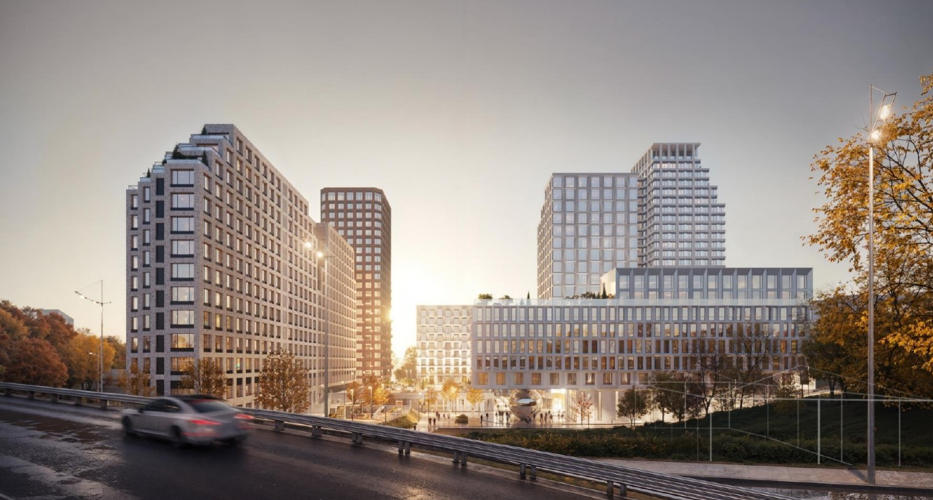 Две башни разной этажности 23 и 27 этажей для формирования гармоничного силуэта комплекса. Центральная башня 19 этажей вдоль пешеходной зоны бульвара.