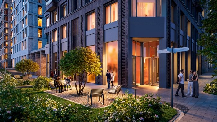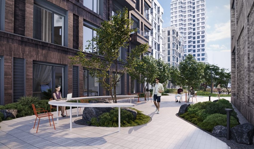 Выходя во внутренний двор Философии вы наслаждаетесь многоуровневым ландшафтным покрытием с всесезонным озеленением и разноуровневым освещением. Доступ в данное пространство только для резидентов комплекса.