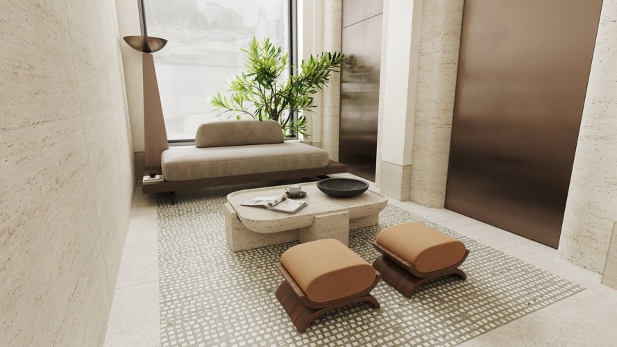 Атмосфера красоты и уюта Философии встречает вас с порога — лобби с теплым полом в каждом корпусе выполнены в разном дизайне, превращающем зоны ожидания в настоящие арт-пространства. Отделка всех помещений внутреннего пространства произведена с помощью дорогостоящих материалов (использован натуральный камень, дерево, стекло).